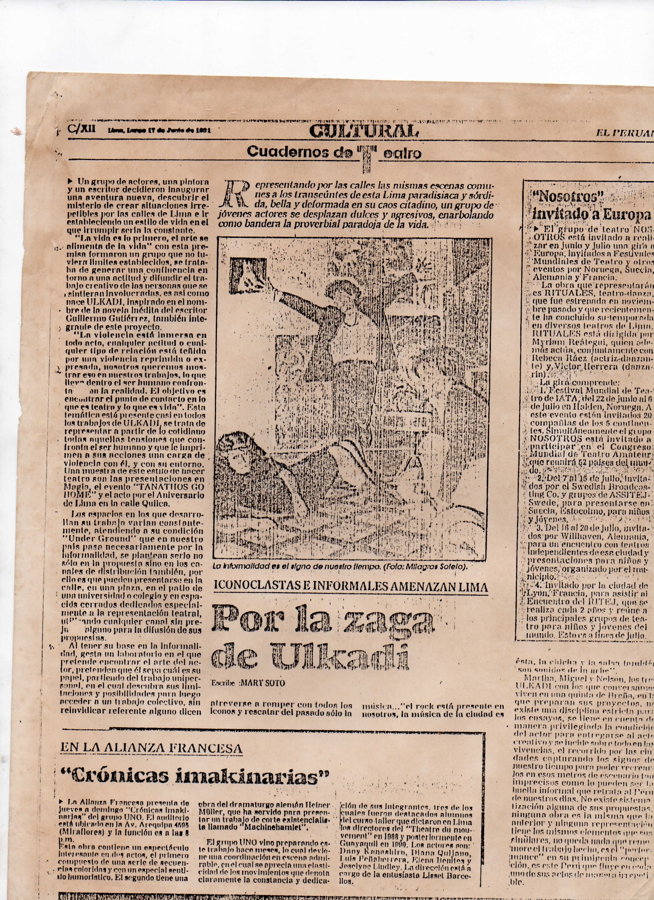ULKADI Colectivo de performance (1989 - 1992) Notas de periódicos (Lima - Perú)